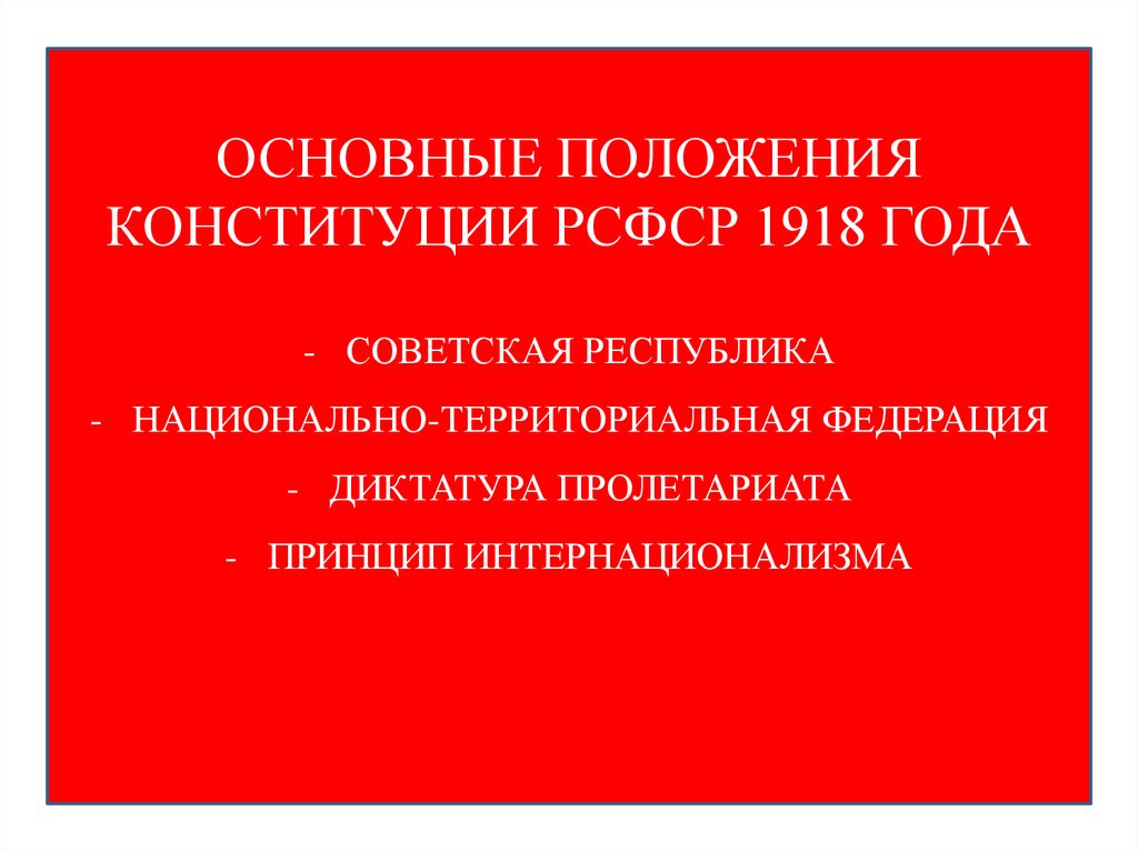 ОСНОВНЫЕ ПОЛОЖЕНИЯКОНСТИТУЦИИ РСФСР 1918 ГОДА