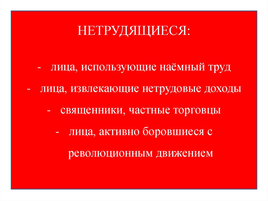 НЕТРУДЯЩИЕСЯ:- лица, использующие наёмный труд