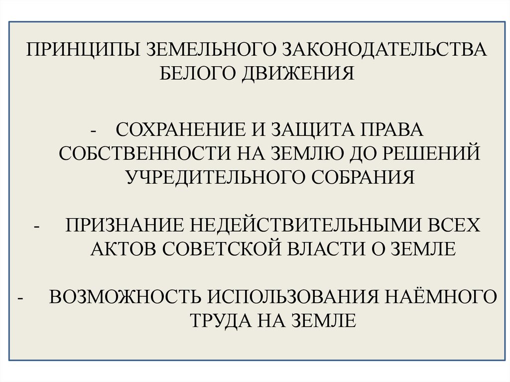 ПРИНЦИПЫ ЗЕМЕЛЬНОГО ЗАКОНОДАТЕЛЬСТВАБЕЛОГО ДВИЖЕНИЯ