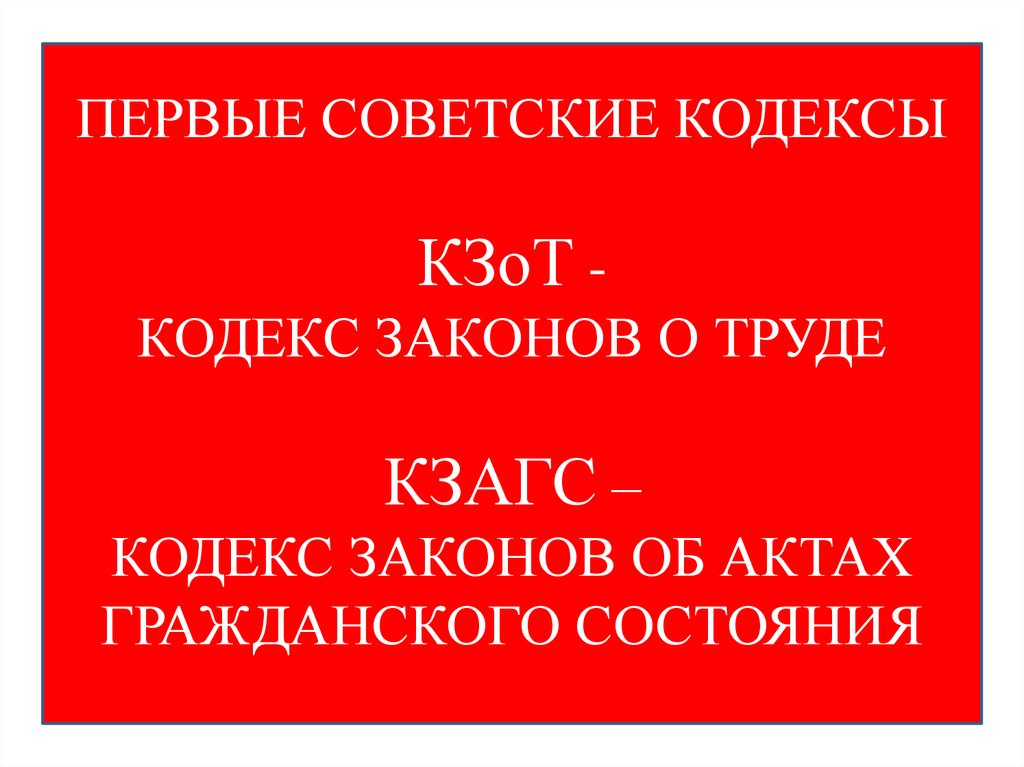 ПЕРВЫЕ СОВЕТСКИЕ КОДЕКСЫКЗоТ КОДЕКС ЗАКОНОВ О ТРУДЕ