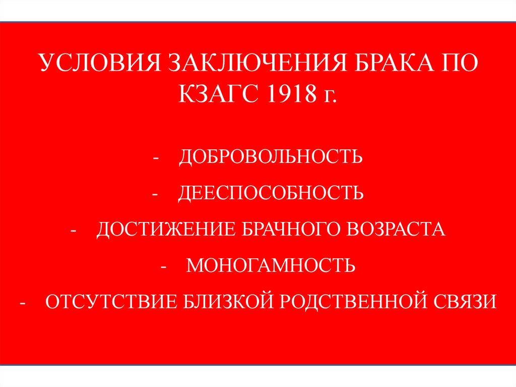 УСЛОВИЯ ЗАКЛЮЧЕНИЯ БРАКА ПОКЗАГС 1918 г.