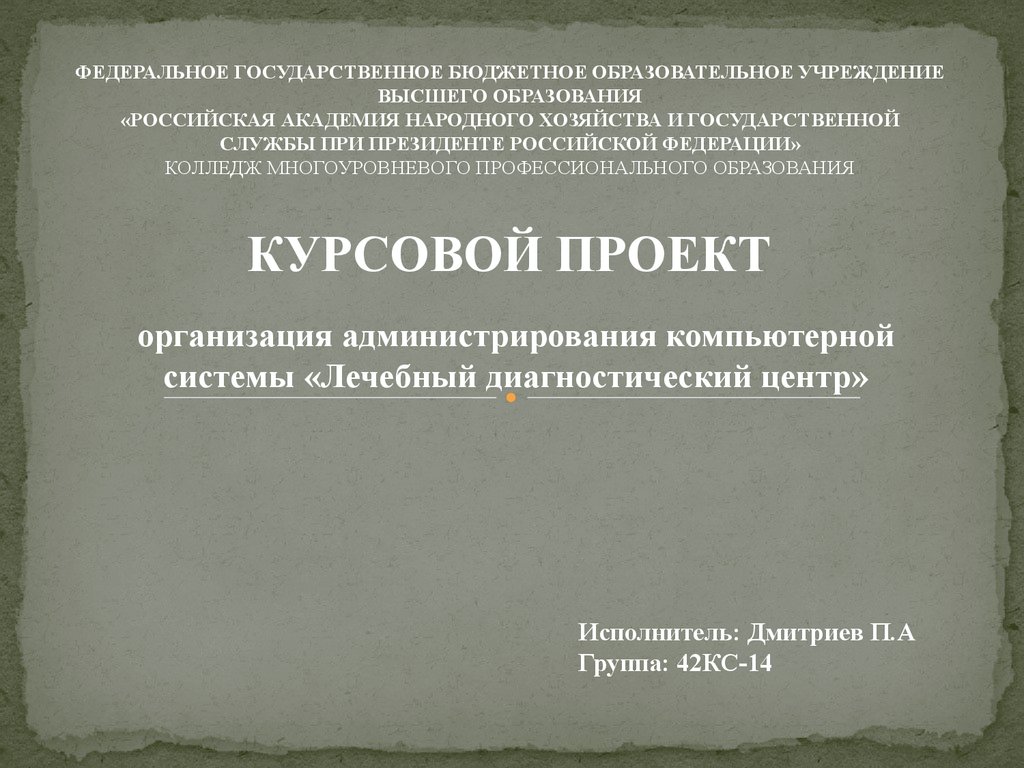 «РОССИЙСКАЯ АКАДЕМИЯ НАРОДНОГО ХОЗЯЙСТВА И ГОСУДАРСТВЕННОЙ