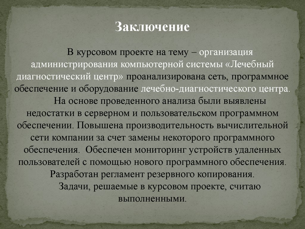 Организация администрирования компьютерной системы «Лечебный диагностический центр»