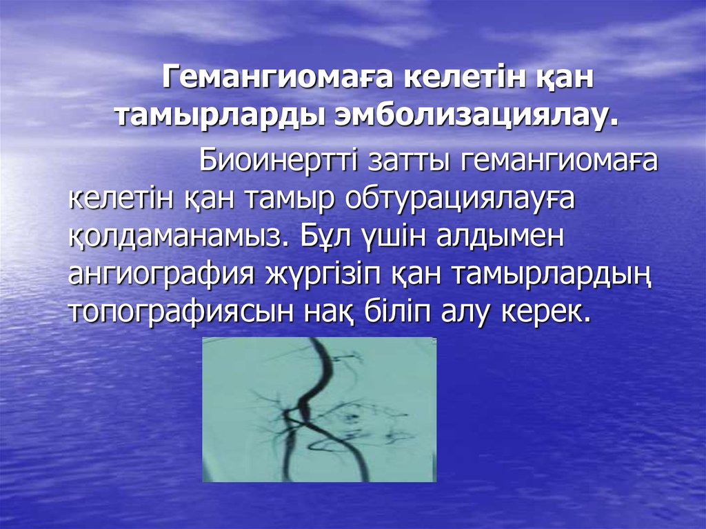 Гемангиомаға келетін қантамырларды эмболизациялау.