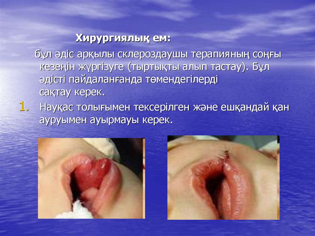 1. БЖА лимфангиомасы және гемангиомасын емдеудің заманауи әдістері.