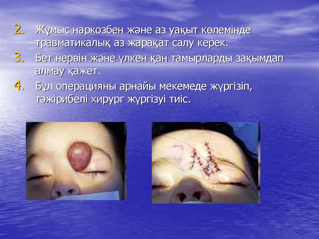 2. Жұмыс наркозбен және аз уақыт көлеміндетравматикалық аз жарақат салу керек.