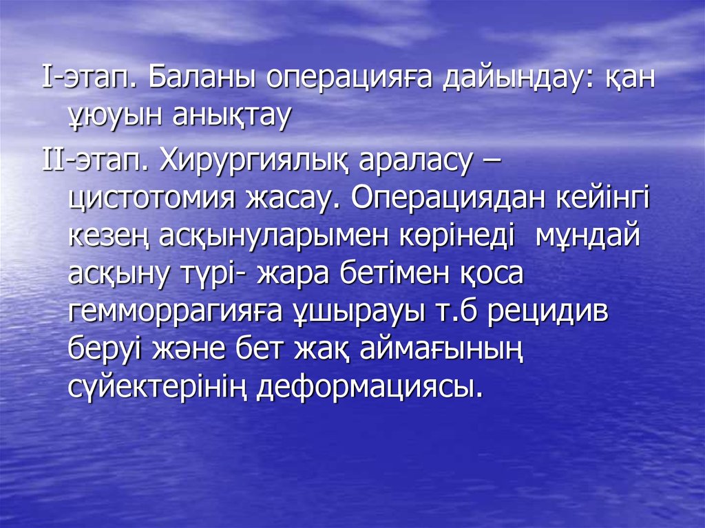 цистотомия жасау. Операциядан кейінгі
