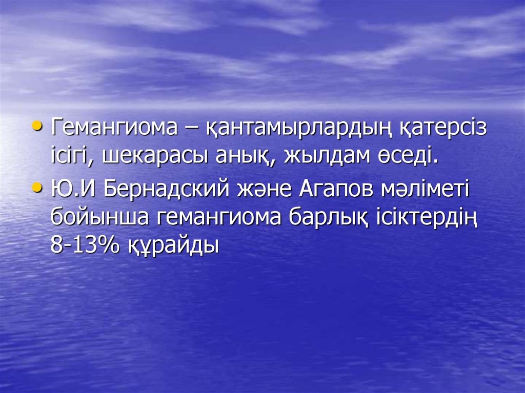 • Гемангиома – қантамырлардың қатерсізісігі, шекарасы анық, жылдам өседі.