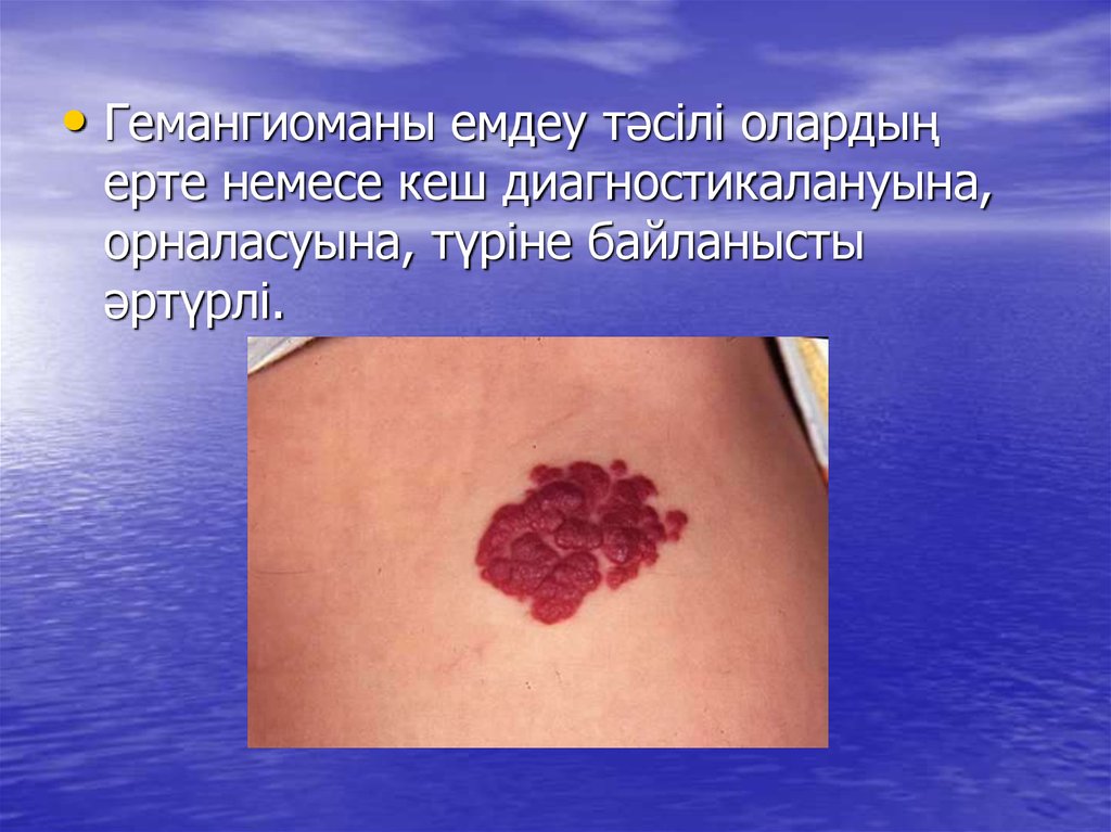 • Гемангиоманы емдеу тәсілі олардыңерте немесе кеш диагностикалануына,