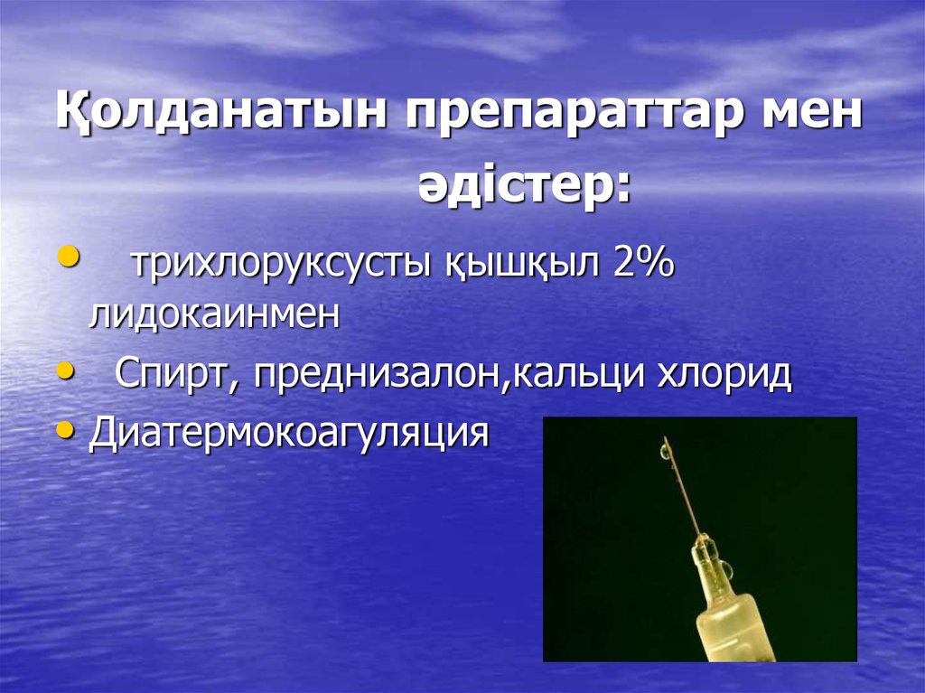 • Спирт, преднизалон,кальци хлорид