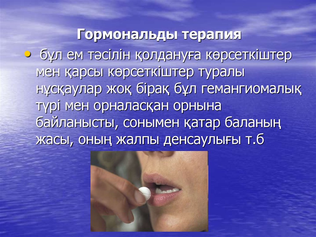 Гормональды терапия• бұл ем тәсілін қолдануға көрсеткіштер