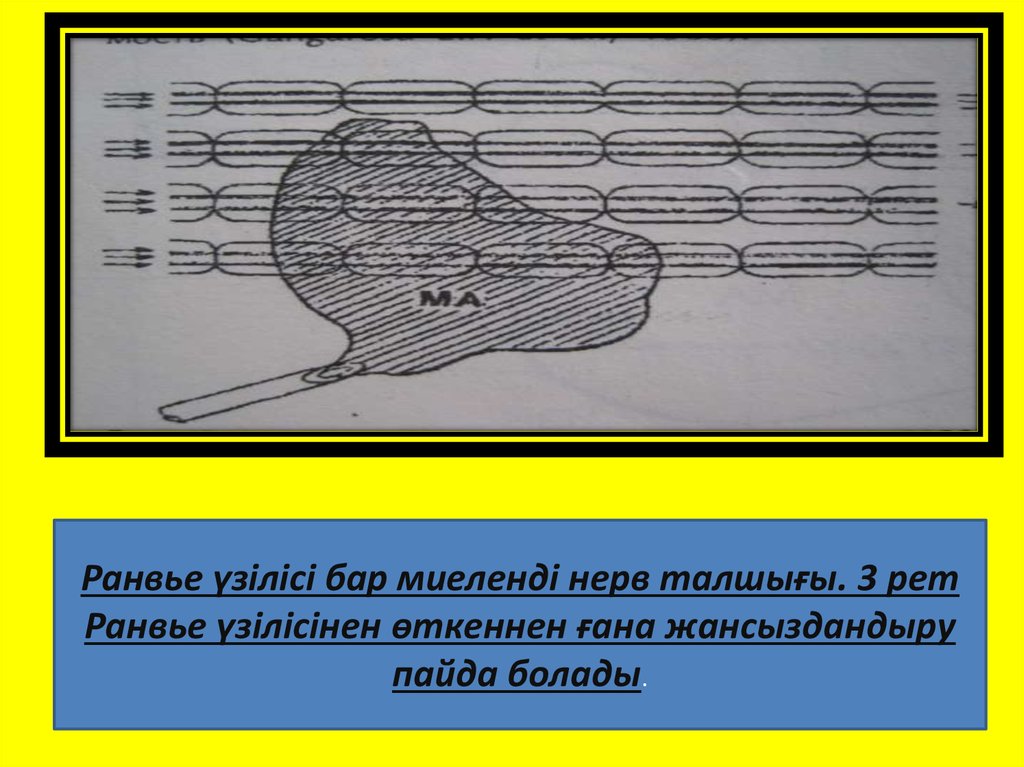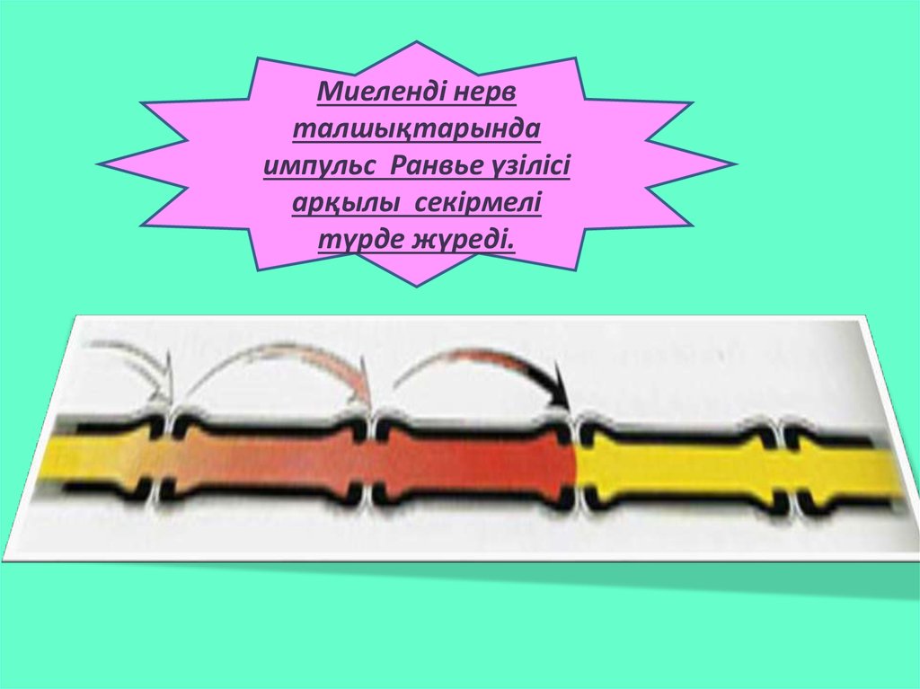 Ранвье үзілісі бар миеленді нерв талшығы. 3 ретРанвье үзілісінен өткеннен ғана жансыздандыру