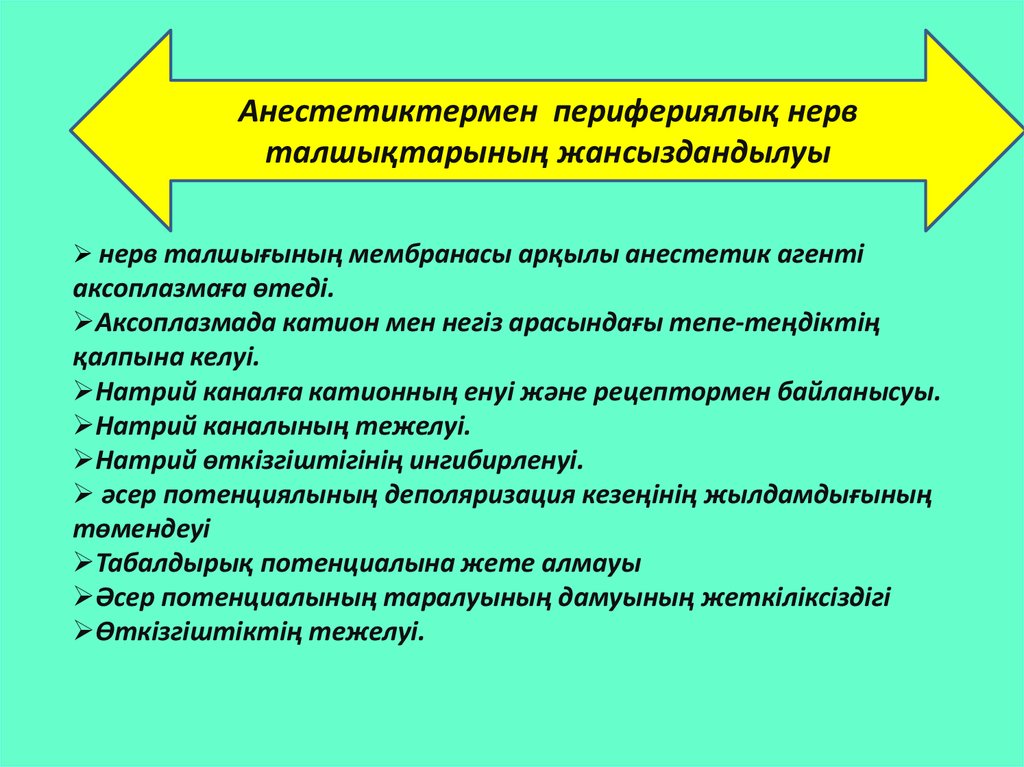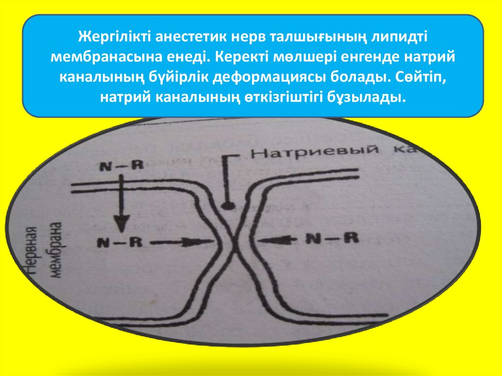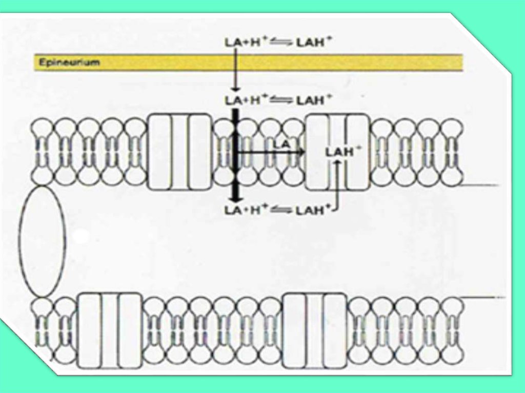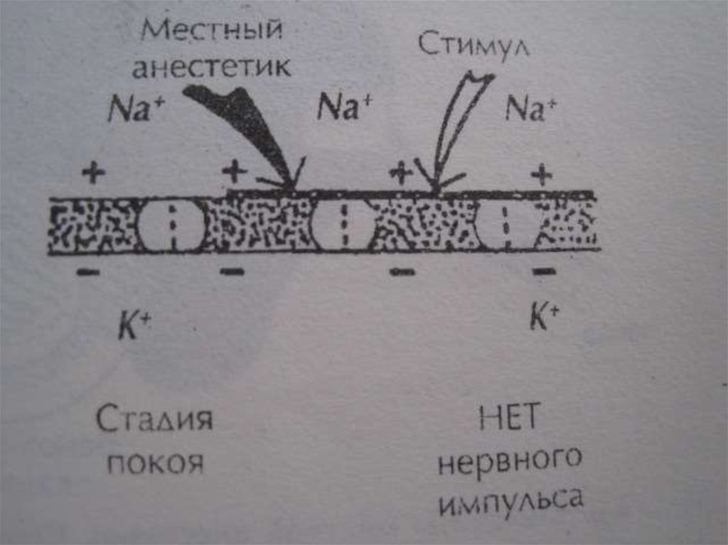 Жергілікті анестетик нерв талшығының липидтімембранасына енеді. Керекті мөлшері енгенде натрий