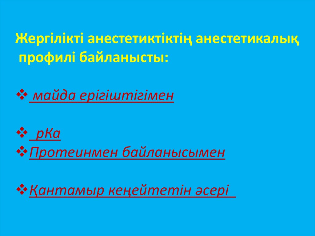 Жергілікті анестетиктіктің анестетикалықпрофилі байланысты: