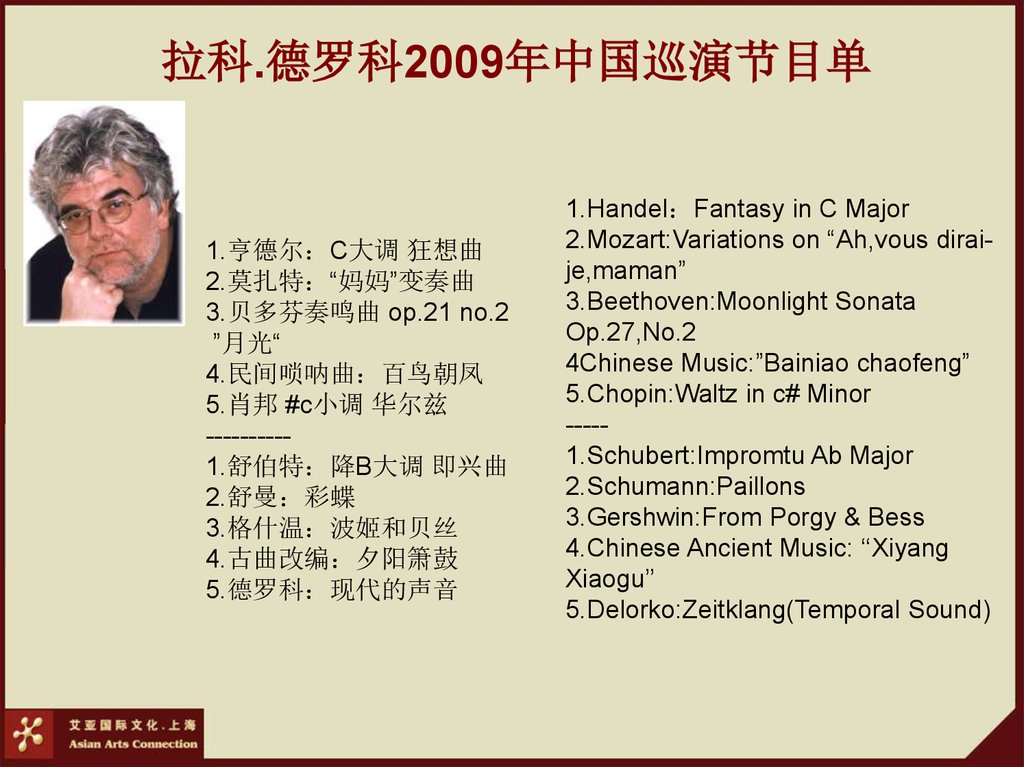 拉科.德罗科2009年中国巡演节目单1.亨德尔 C大调 狂想曲