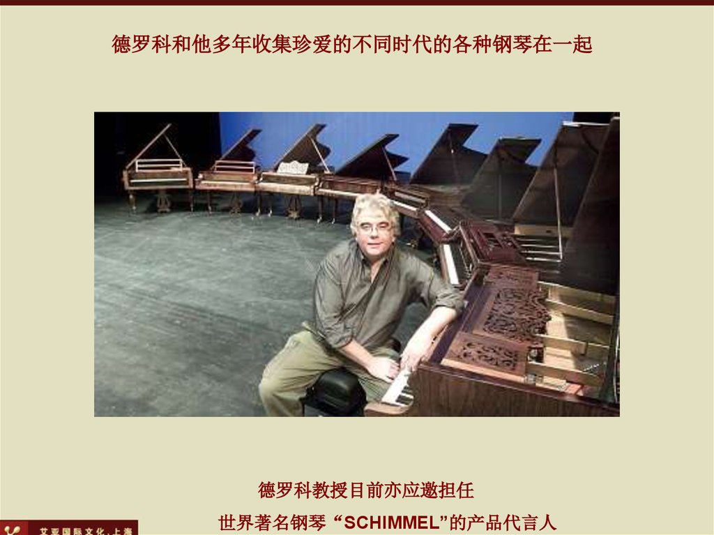 德罗科和他多年收集珍爱的不同时代的各种钢琴在一起德罗科教授目前亦应邀担任