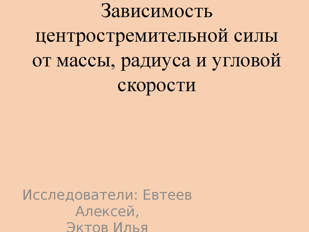 1. Зависимость центростремительной силы от массы, радиуса и угловой скорости