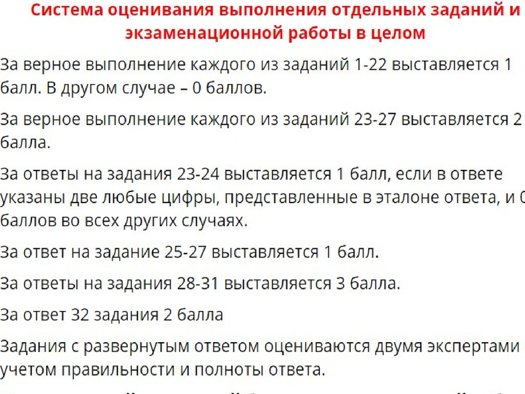 Система оценивания выполнения отдельных заданий и экзаменационной работы в целом