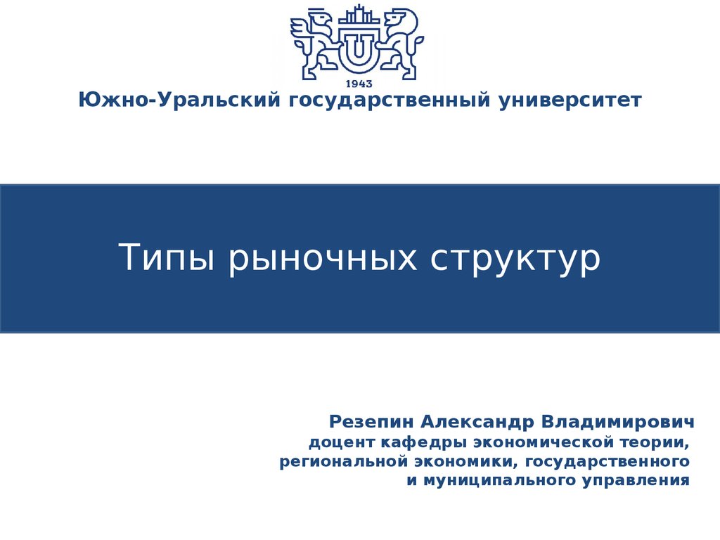 Южно-Уральский государственный университетТипы рыночных структур