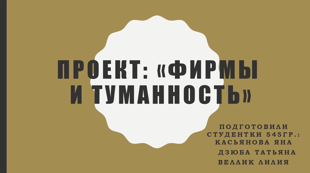 ПРОЕКТ: «ФИРМЫИ ТУМАННОСТЬ»