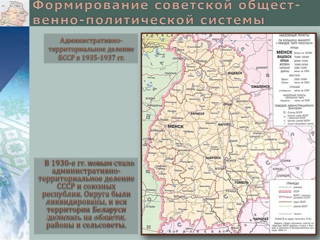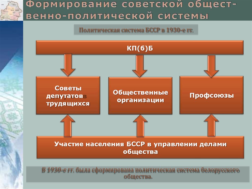 В 1930-е гг. была сформирована политическая система белорусского