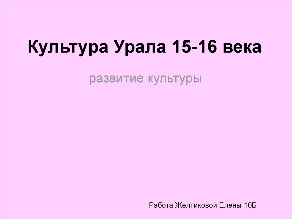 1. Культура Урала 15-16 века