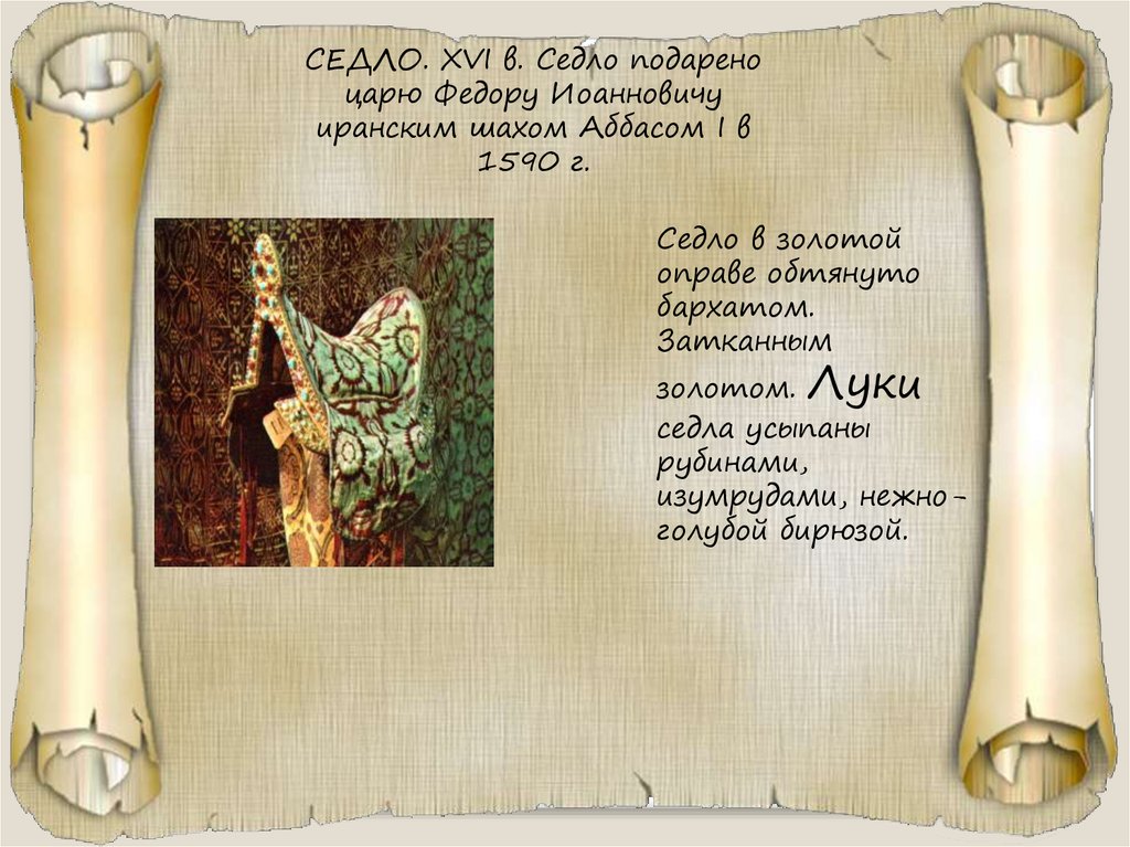 СЕДЛО. XVI в. Седло подареноцарю Федору Иоанновичу