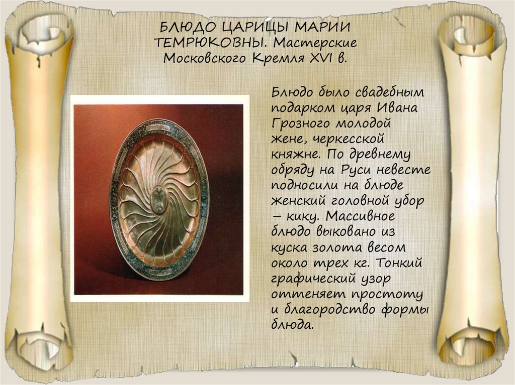 БЛЮДО ЦАРИЦЫ МАРИИТЕМРЮКОВНЫ. Мастерские