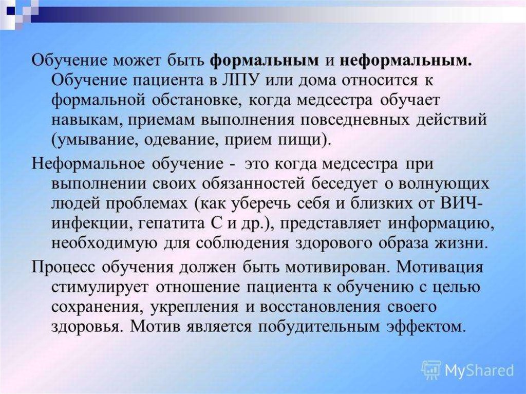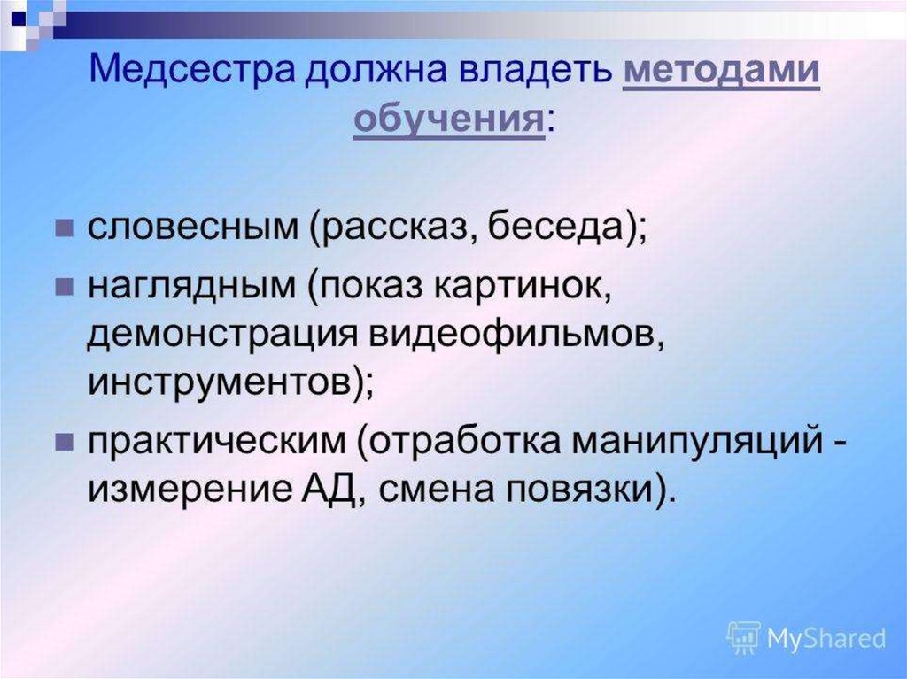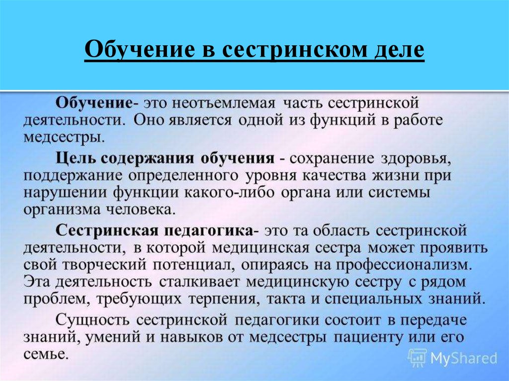 Обучение в сестринском деле. Лекция