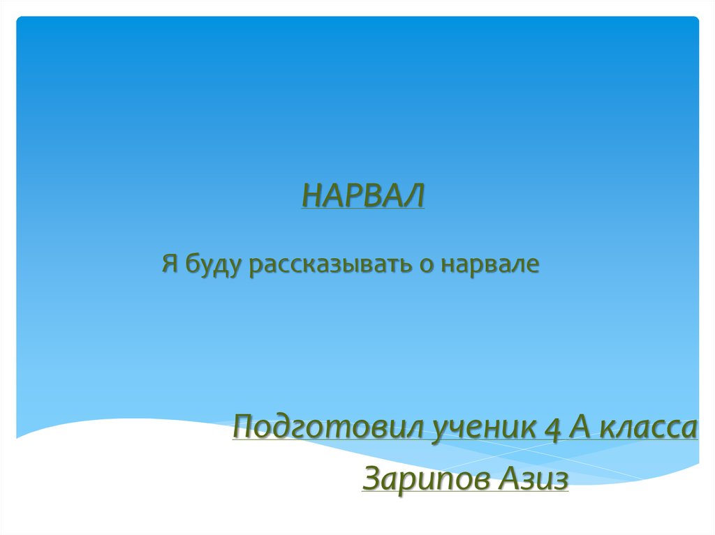 Я буду рассказывать о нарвалеПодготовил ученик 4 А класса