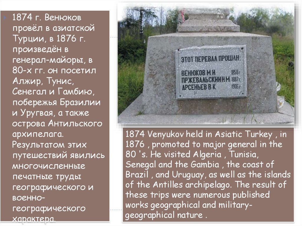 1874 г. Венюковпровёл в азиатской