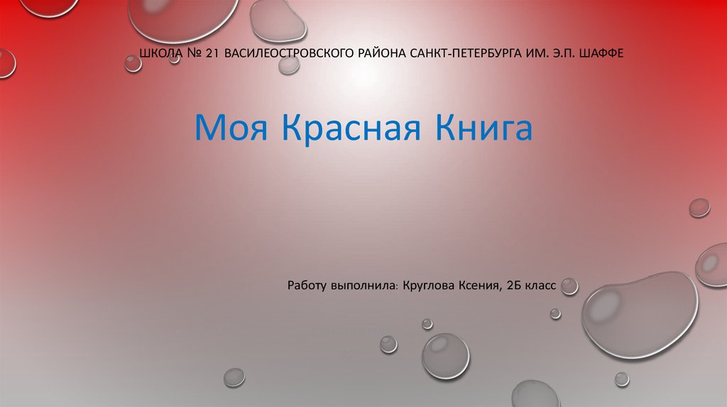 ШКОЛА № 21 ВАСИЛЕОСТРОВСКОГО РАЙОНА САНКТ-ПЕТЕРБУРГА ИМ. Э.П. ШАФФЕМоя Красная Книга