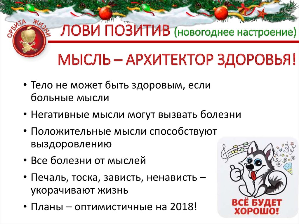 ЛОВИ ПОЗИТИВ (новогоднее настроение)МЫСЛЬ – АРХИТЕКТОР ЗДОРОВЬЯ!