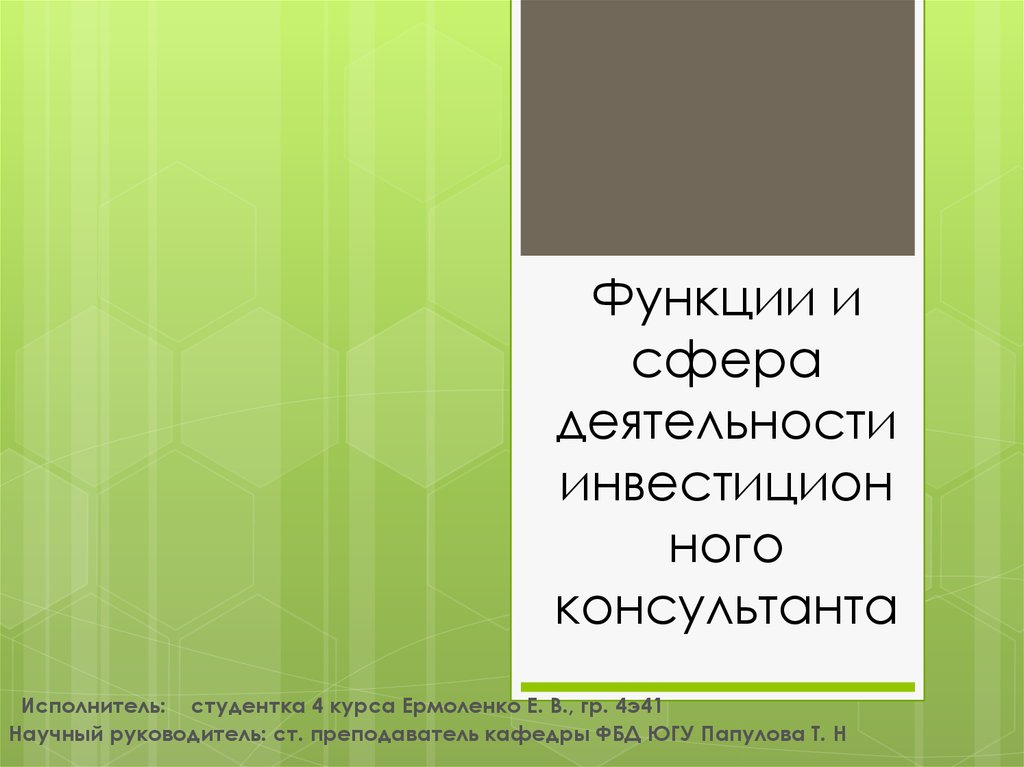 3. I Инвестиционный консультант: понятие, экономическая сущность