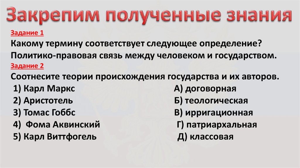 Соотнесите теории происхождения государства и их авторов.