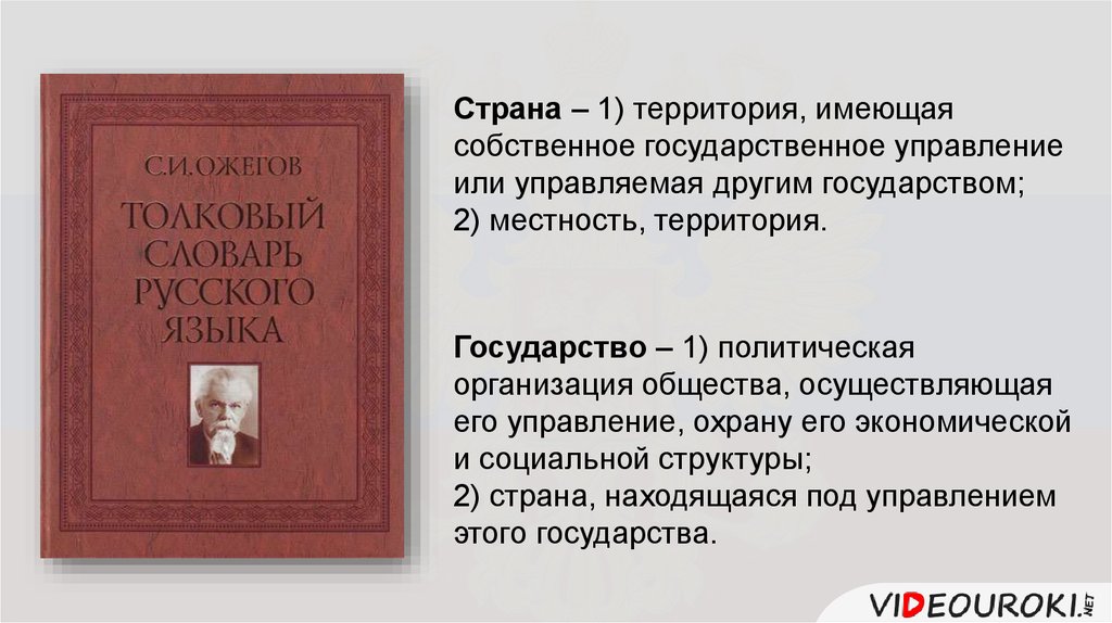 Страна – 1) территория, имеющаясобственное государственное управление