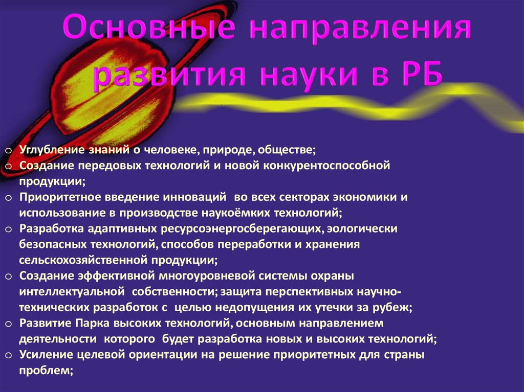 o Углубление знаний о человеке, природе, обществе;o Создание передовых технологий и новой конкурентоспособной