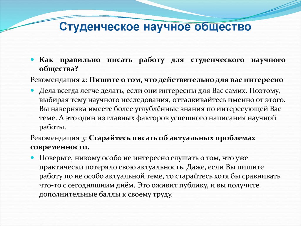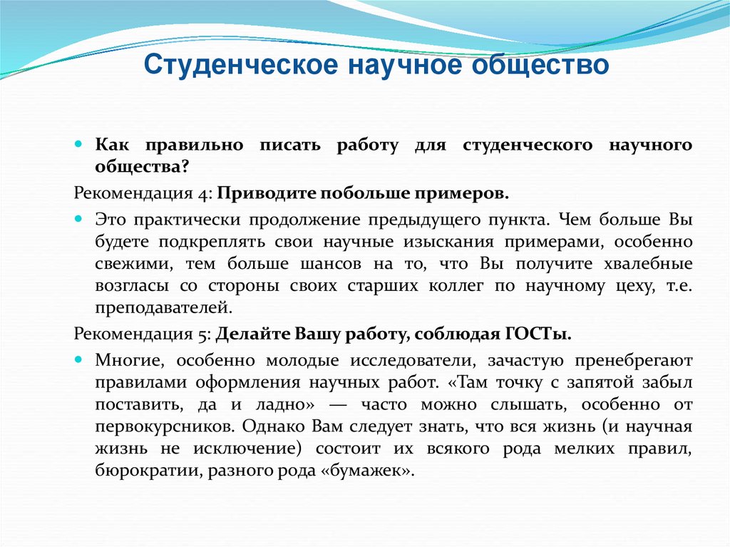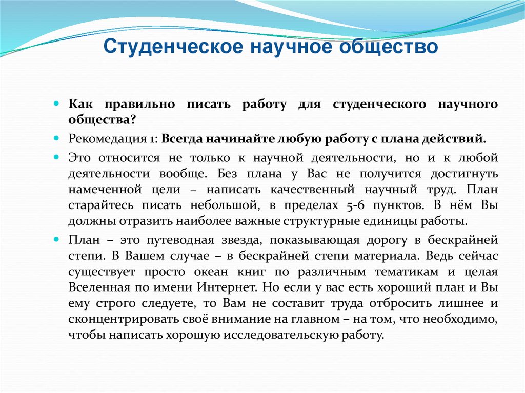 Студенческое научное обществоКак правильно писать работу для студенческого научного