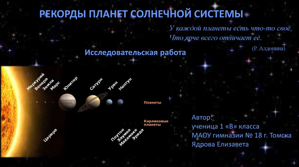 Цель – изучить планеты Солнечной системы и выявить рекорды,