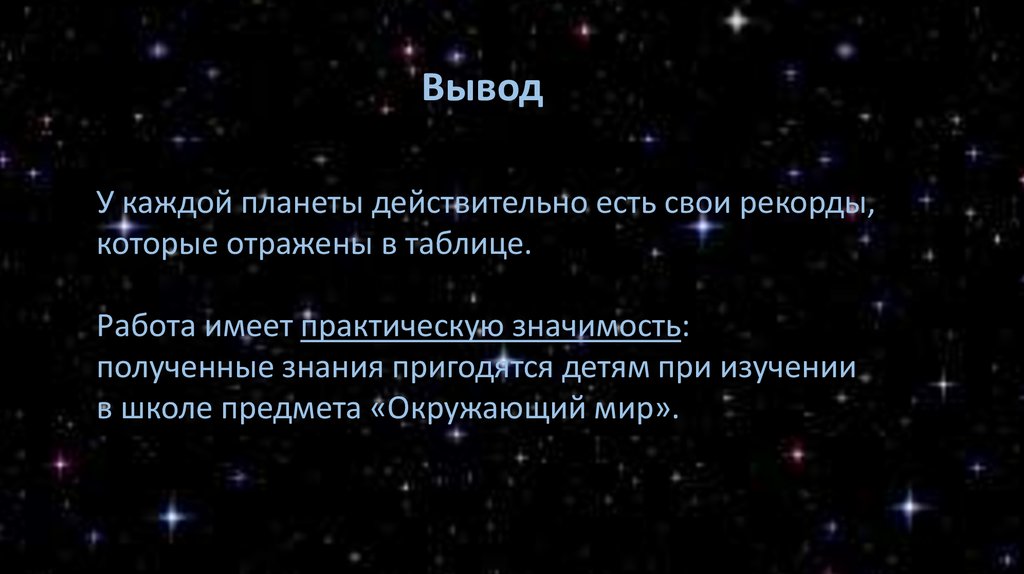 ВыводУ каждой планеты действительно есть свои рекорды,