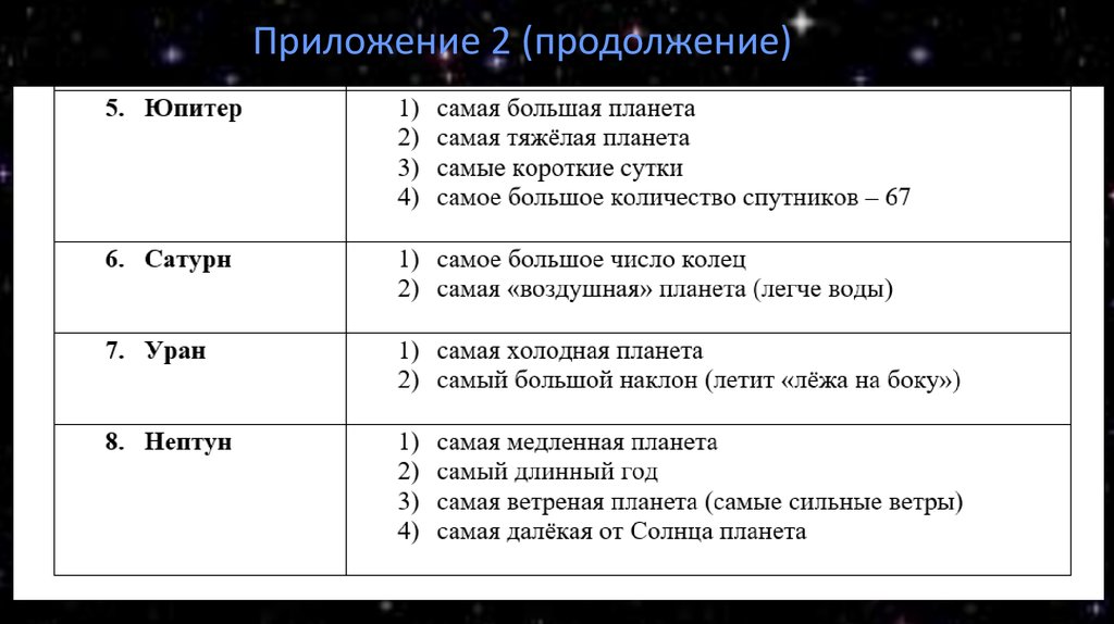 1) ознакомиться с литературой о планетах Солнечной системы;