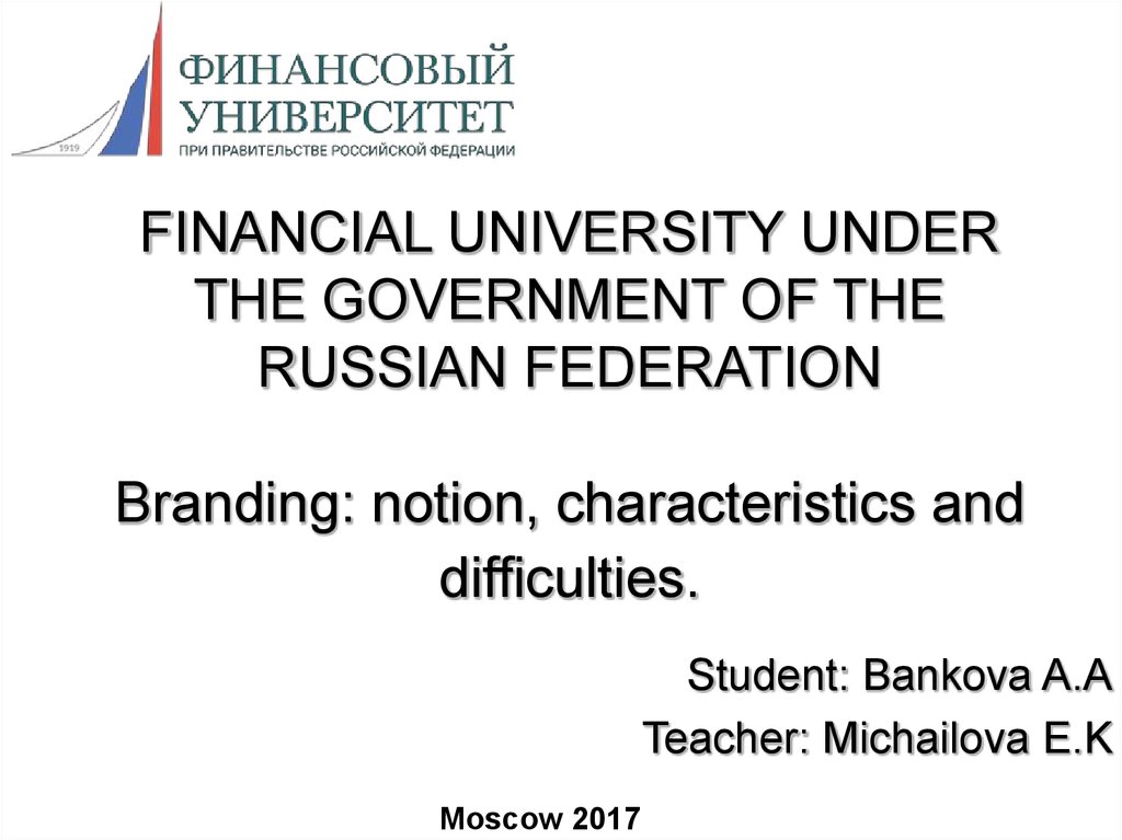 1. FINANCIAL UNIVERSITY UNDER THE GOVERNMENT OF THE RUSSIAN FEDERATION Branding: notion, characteristics and difficulties.