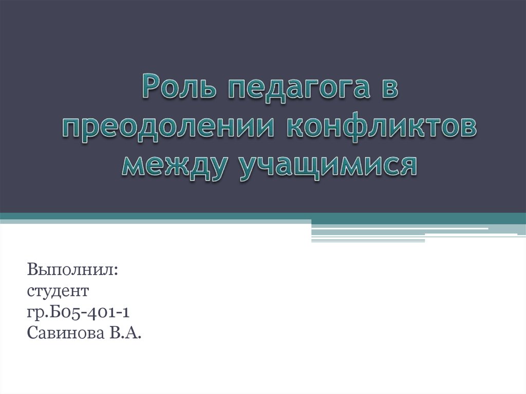 1. Роль педагога в преодолении конфликтов между учащимися
