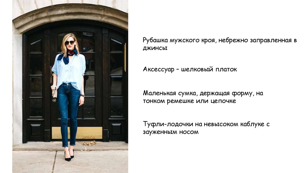Рубашка мужского кроя, небрежно заправленная вджинсы