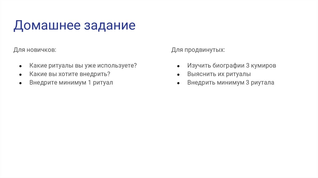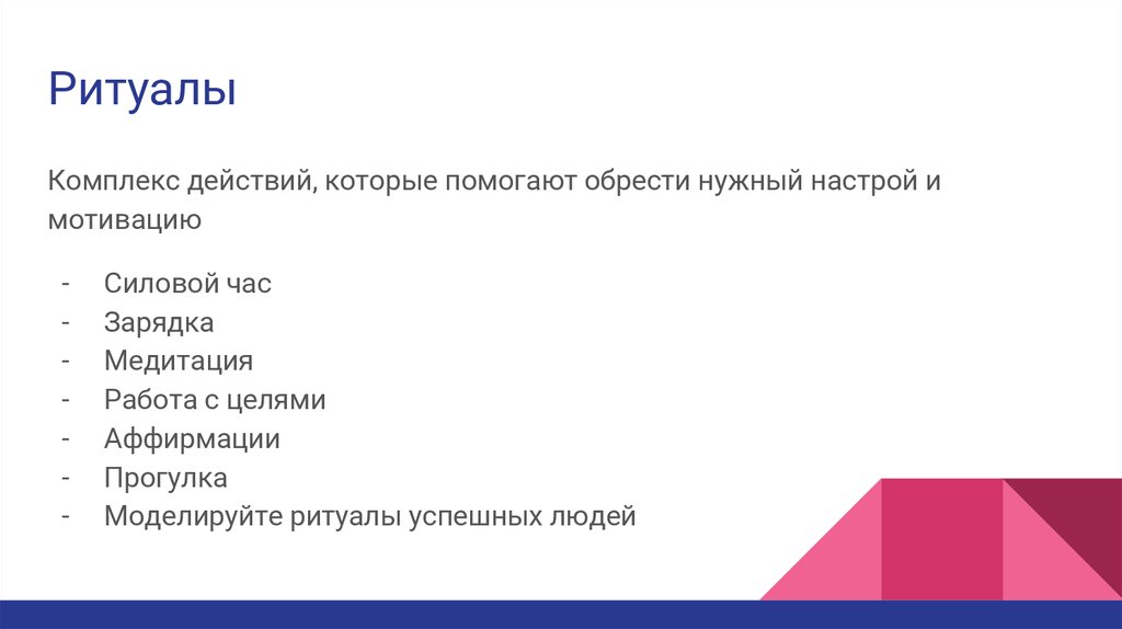 РитуалыКомплекс действий, которые помогают обрести нужный настрой и