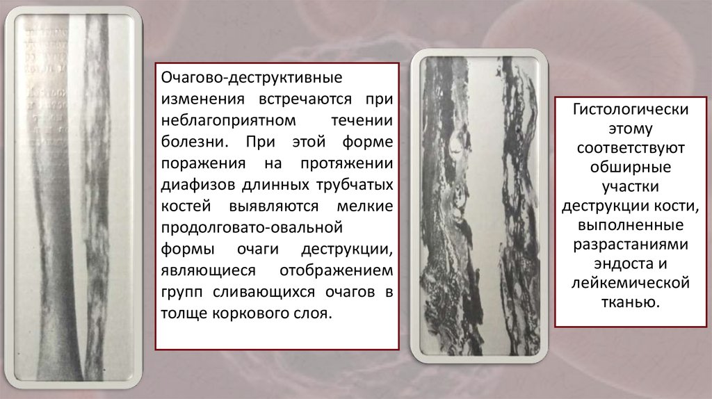 развёртываются на фоне диффузной инфильтрации костномозговой полости
