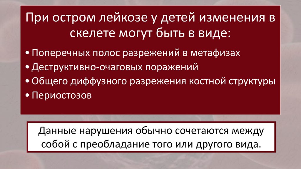 рентгенологической картине костной патологии от лейкоза