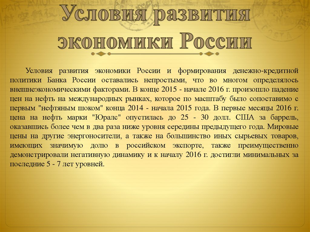 Условия развития экономики России и формирования денежно-кредитнойполитики Банка России оставались непростыми, что во многом определялось