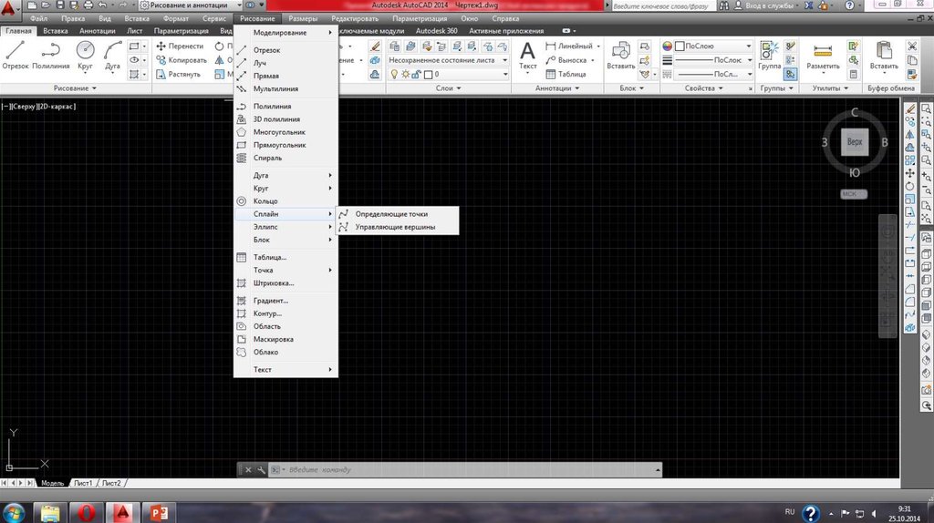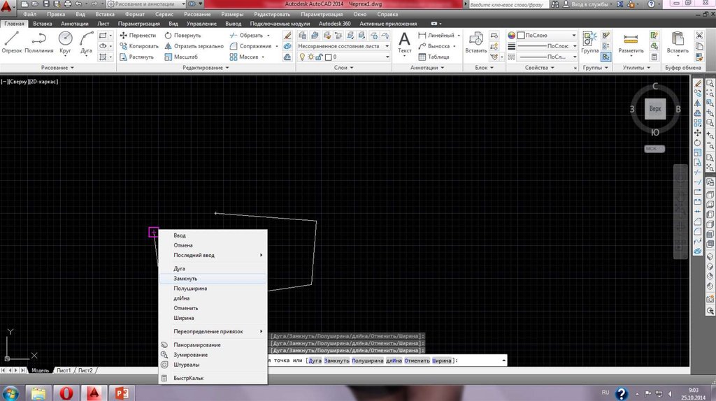 Для построения полилинии на вкладке"Главная" в панели "Рисование"
