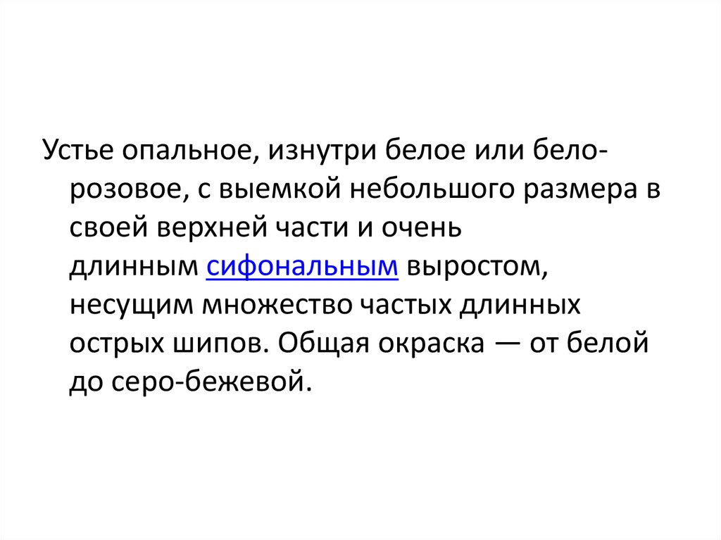 Устье опальное, изнутри белое или белорозовое, с выемкой небольшого размера всвоей верхней части и очень